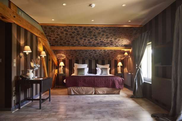Couleurs chaudes et matières nobles, le Manoir des Montagnes Hôtel 4 étoiles dans le Jura vous propose des chambres et suites douillettes et confortables alliées à des prestations de qualité. Des chambres avec de beaux volumes, bien insonorisées et équipées de literies de qualité.